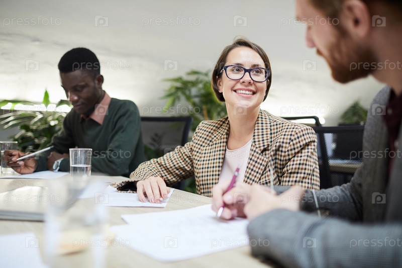 Улыбающийся бизнес-менеджер на встрече