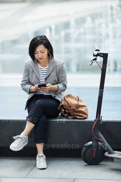 Азиатская женщина отдыхает в современной городской зоне