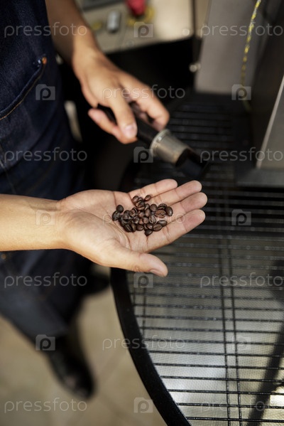Работник проверяет качество кофейных зерен