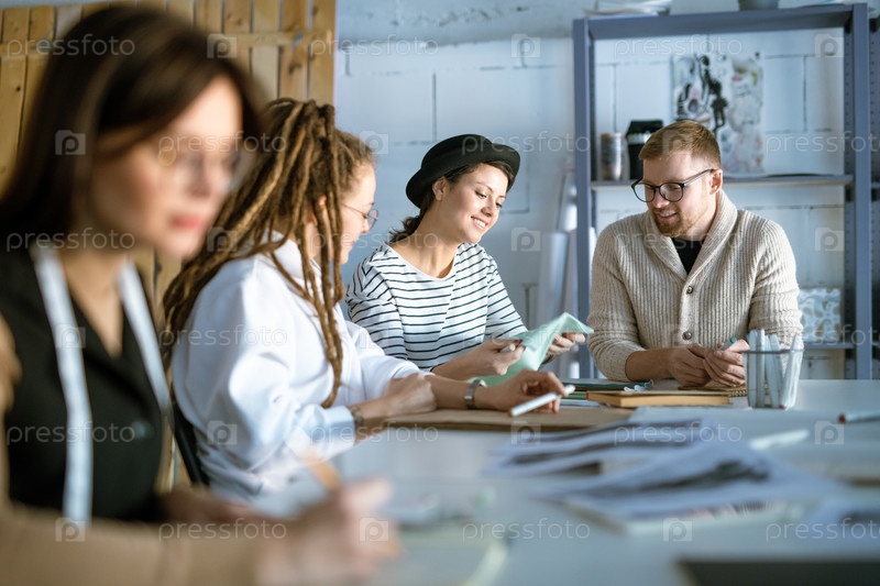 Группа творческих молодых дизайнеров или студентов, работающих над новым проектом