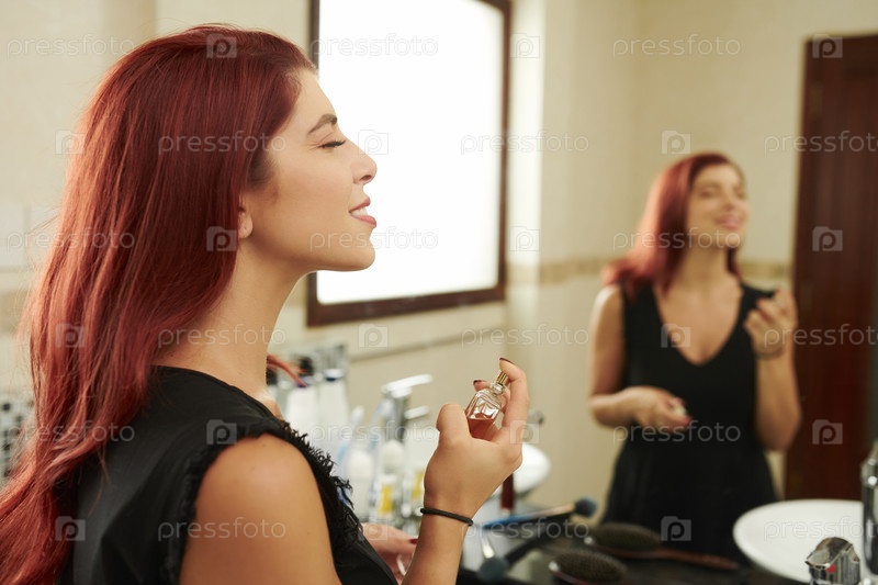 Молодая женщина наслаждается новым ароматом