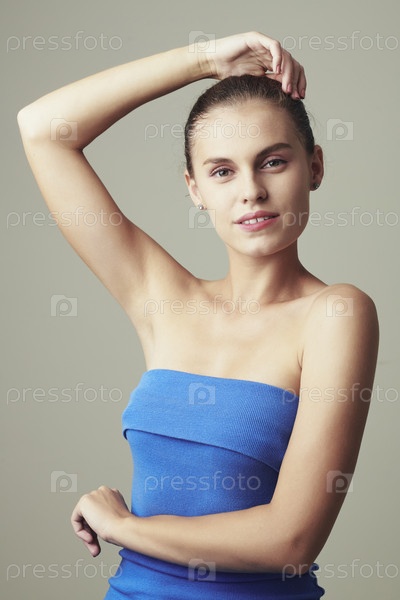 Тонкая молодая женщина позирует в платье