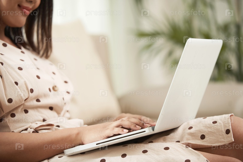 Женщина, печатающая на ноутбуке