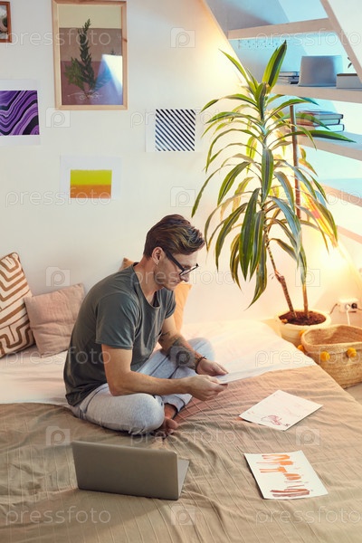Творческий взрослый мужчина, работающий дома
