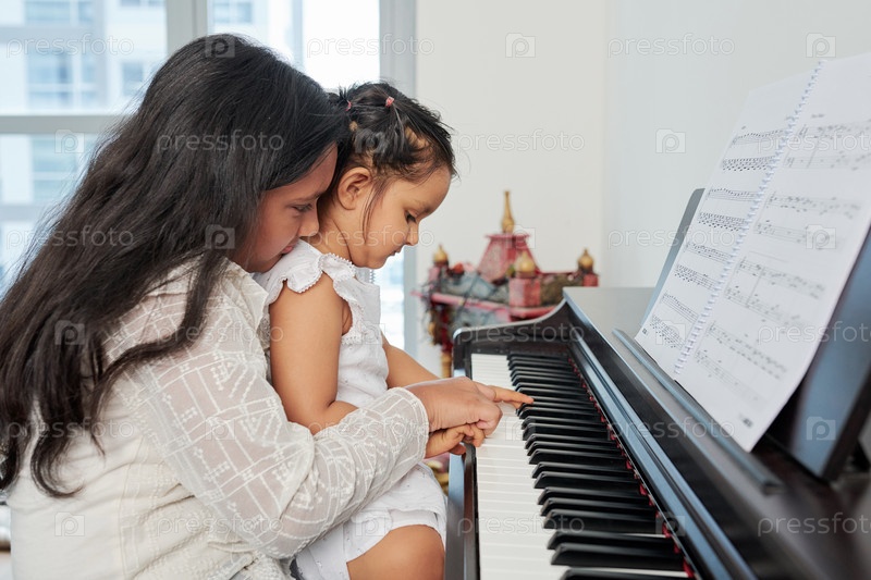 Девочки учатся играть на фортепиано