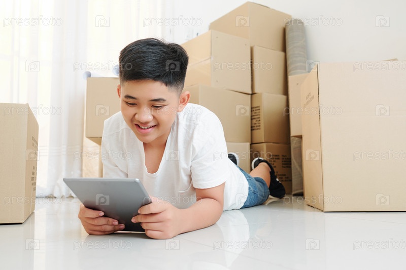 Мальчик смотрит мультфильм после переезда