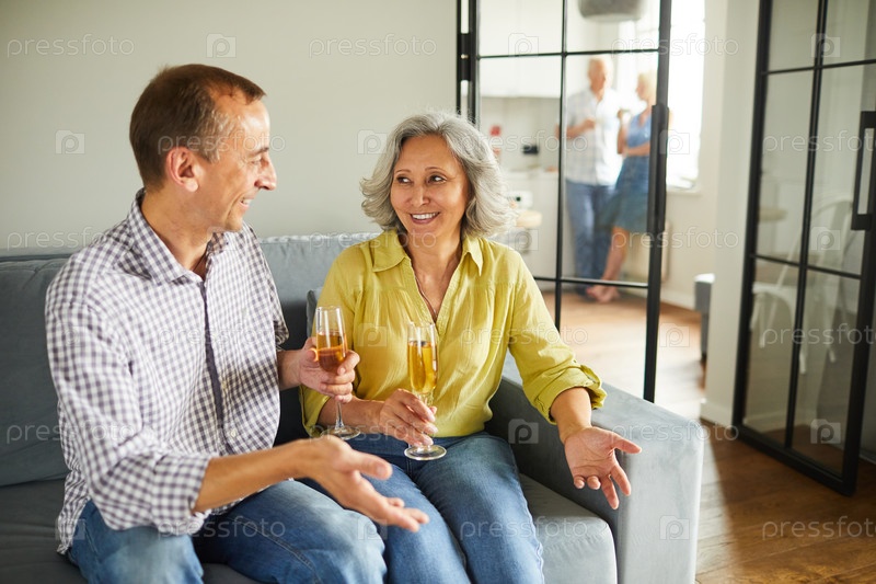 Старшая пара пьет шампанское на вечеринке