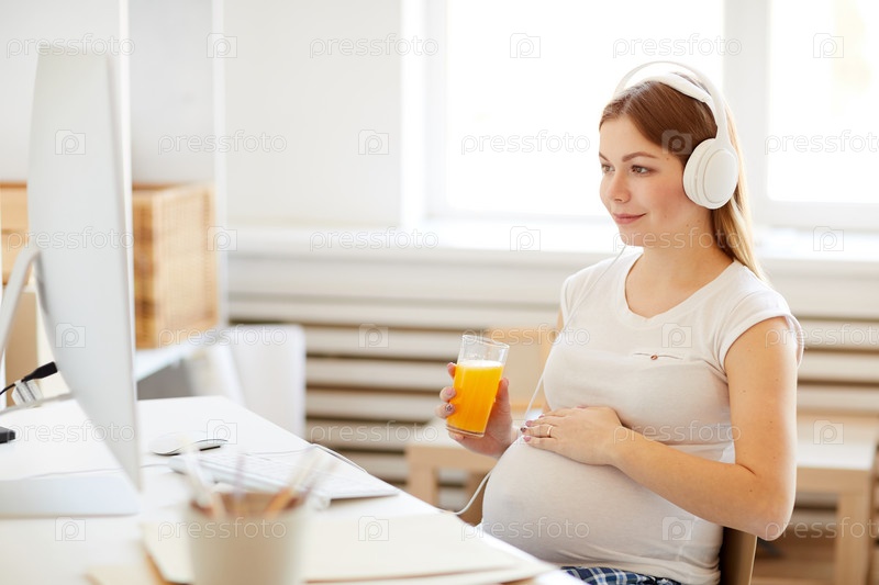 Беременная женщина смотрит видео