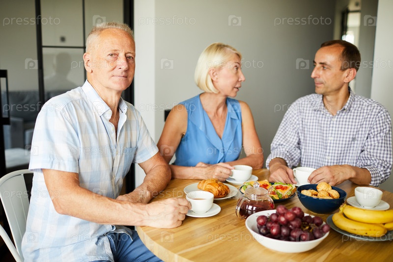 Зрелые люди наслаждаются обедом