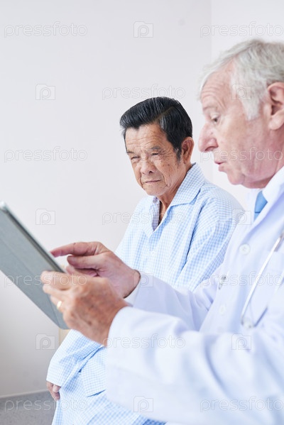 Врач показывает пациенту планшетный компьютер