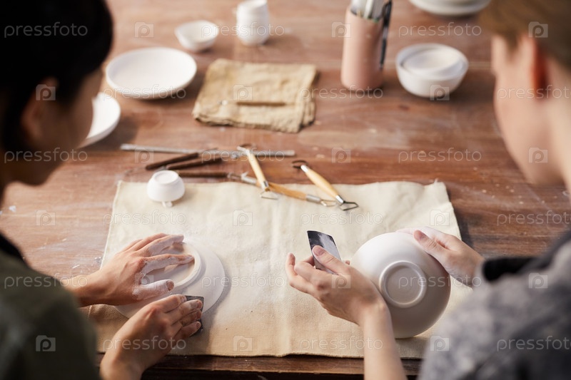 Полировка глиняных посуд песочницей