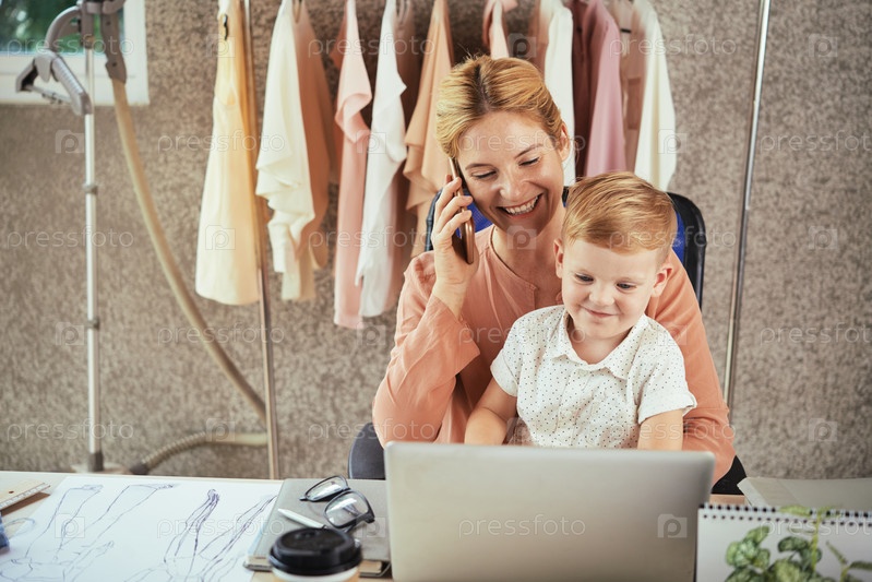Молодая мать на работе