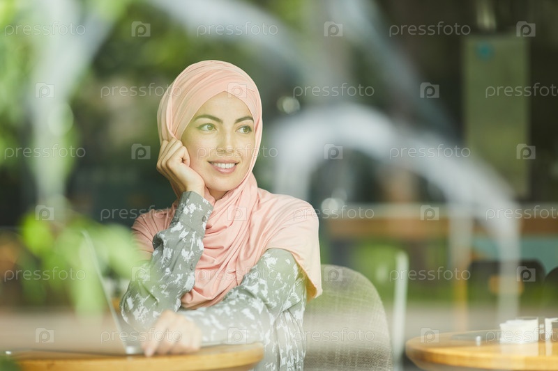 Мусульманская бизнесвумен в ресторане