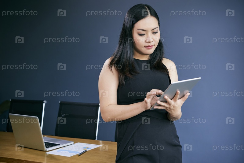 Деловая женщина, работающая на планшете