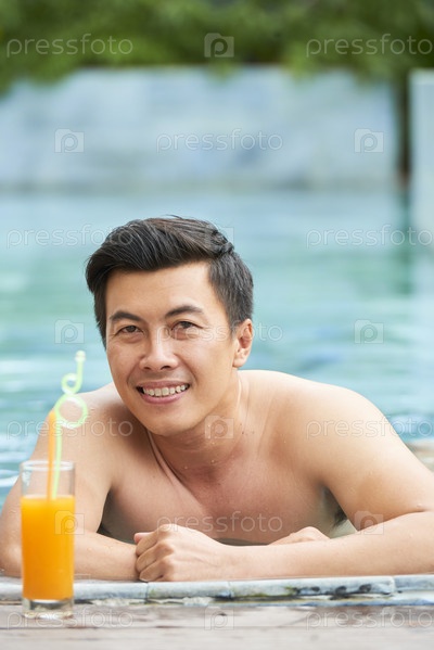Счастливый мужчина в бассейне