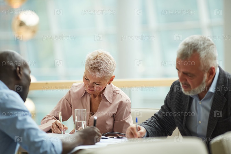 Деловые люди, пишущие на встрече
