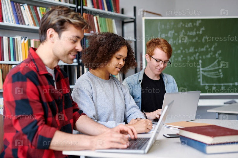 Группа молодых студентов колледжа, готовящихся к предстоящему семинару