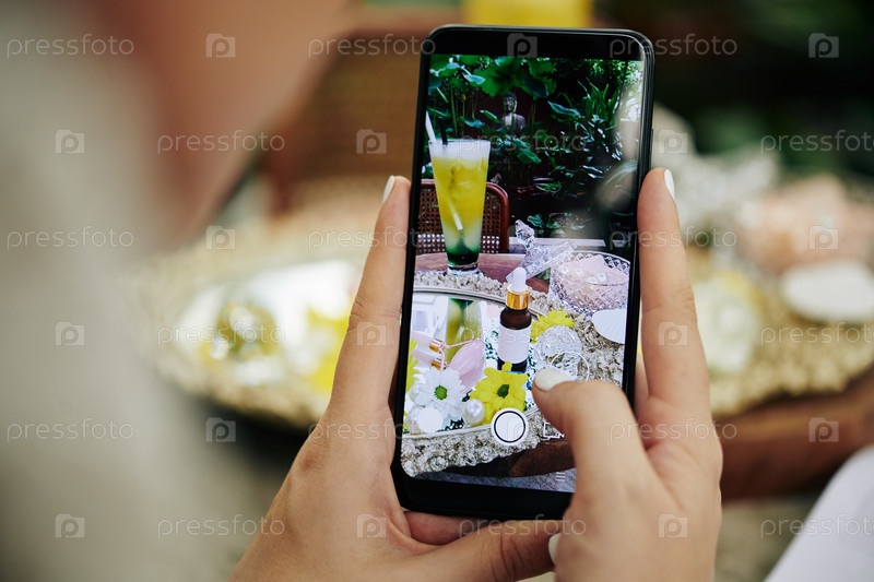 Женщина фотографирует косметику