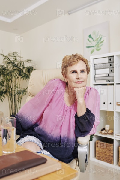 Пожилая предпринимательница в своем офисе