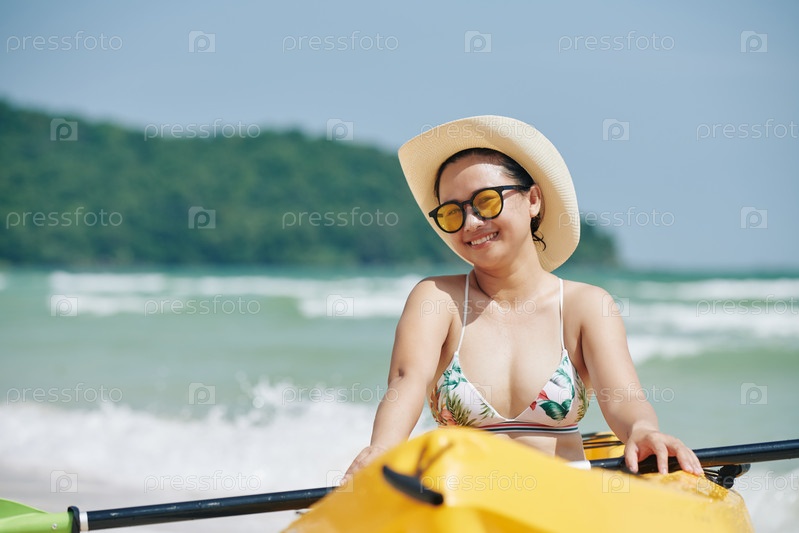 Красивая женщина на байдарках