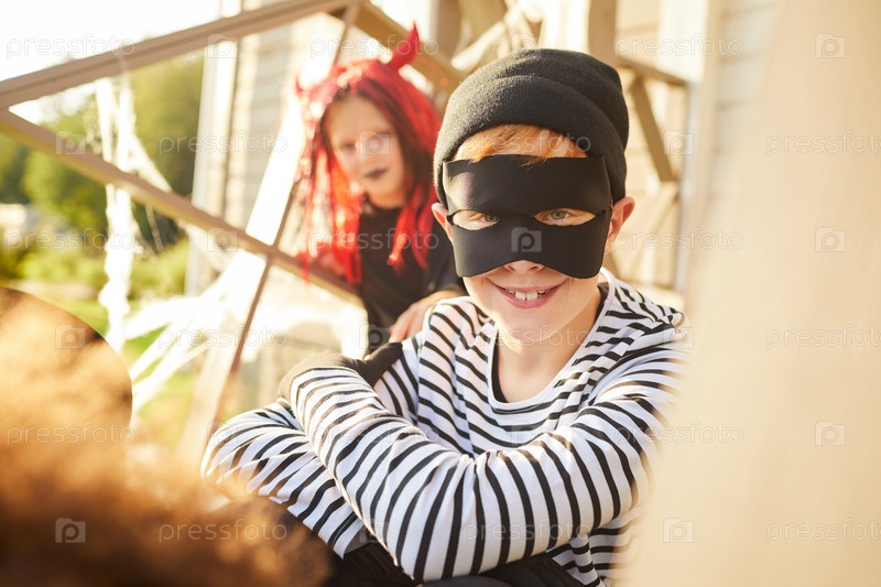Улыбающийся маленький бандит на Хэллоуин