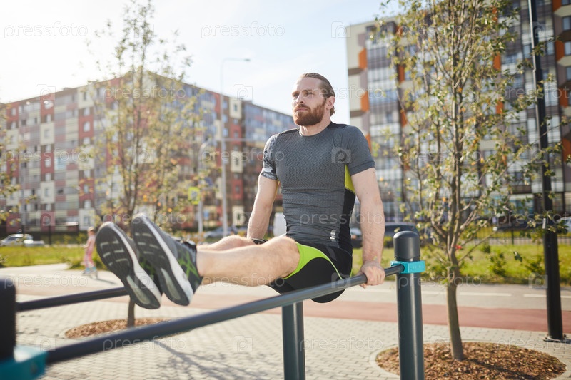 Молодой спортсмен сохраняет собственное тело на прямых руках