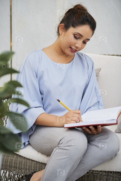 Женщина пишет в блокноте