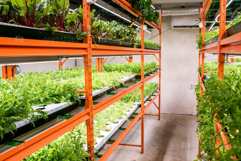Зеленые саженцы различных видов и сортов овощей растут на полках
