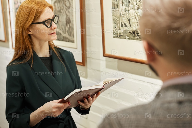 Художественный менеджер проводит экскурсию для мужчины