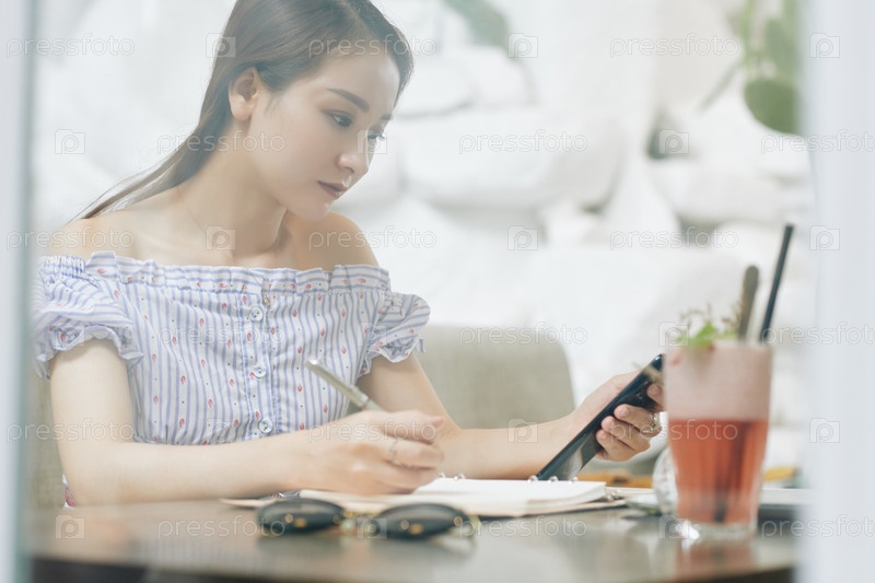 Студент делает домашнее задание в кафе