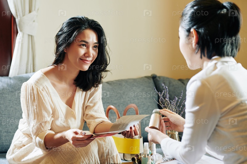 Продавец предлагает лечение с помощью буклета
