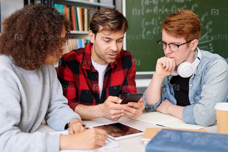 Один из парней, использующих смартфон во время поиска онлайн-идей
