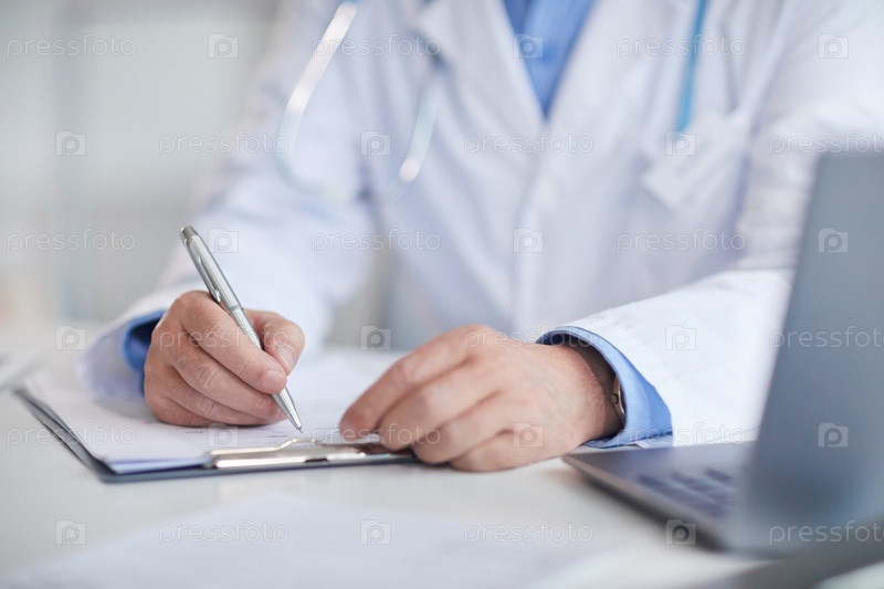 Врач, заполняющий медицинскую карту