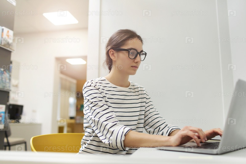 Деловая женщина, работающая онлайн на ноутбуке