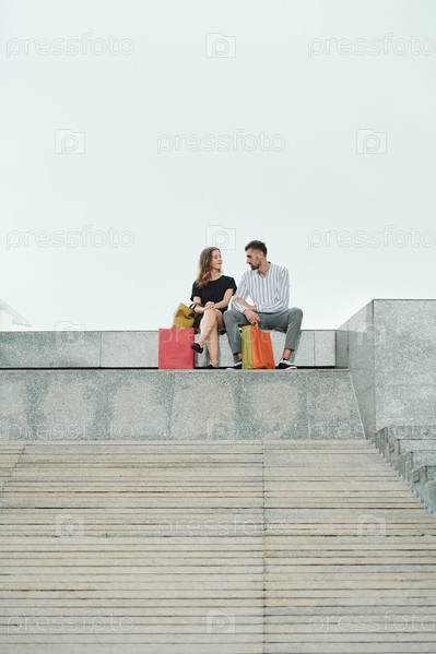Пара отдыхает после покупок