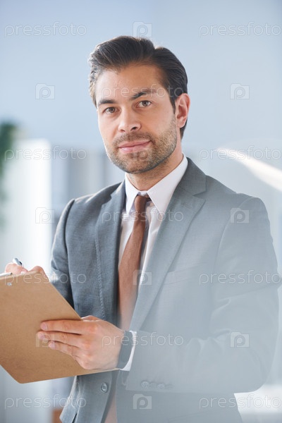 Молодой успешный директор бизнес-компании подписывает документ