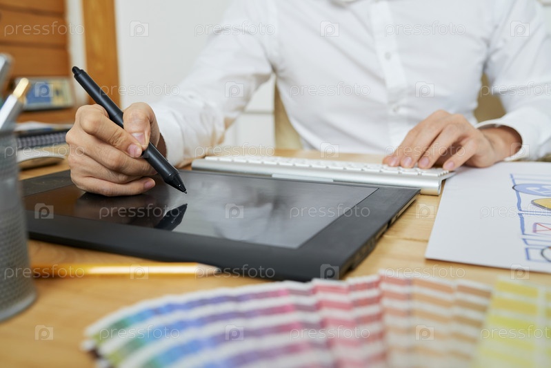 Дизайнер, работающий на графическом планшете