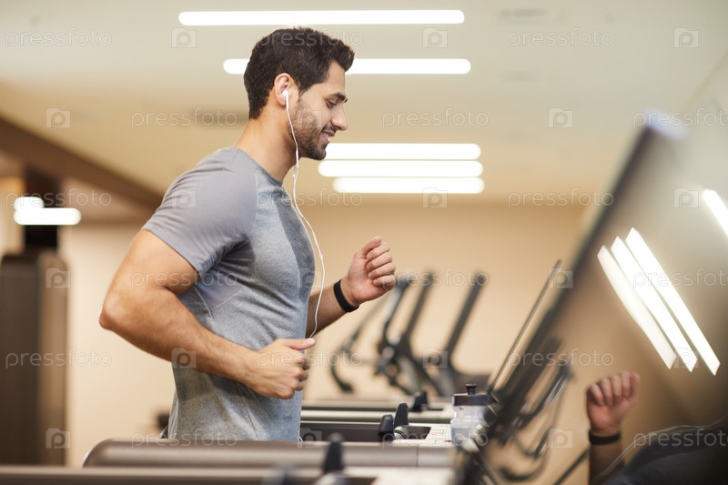 Красивый мужчина, бегущий на беговой дорожке