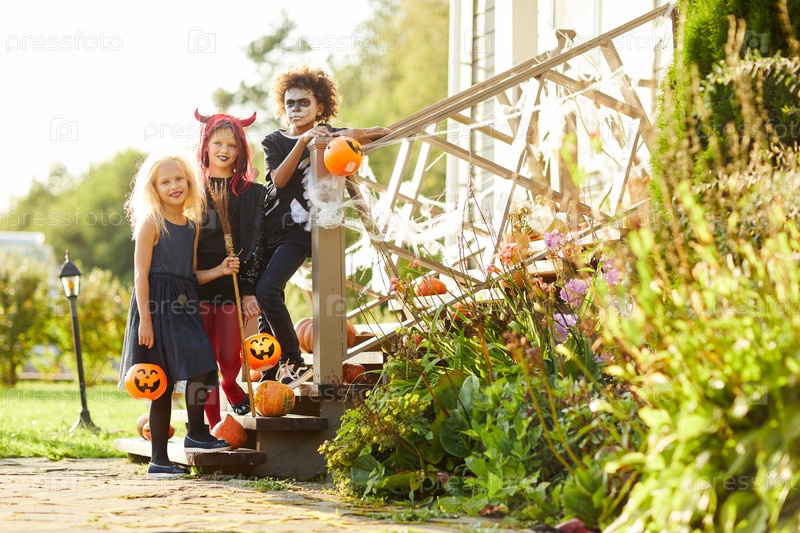 Группа детей, позирующих на Хэллоуин
