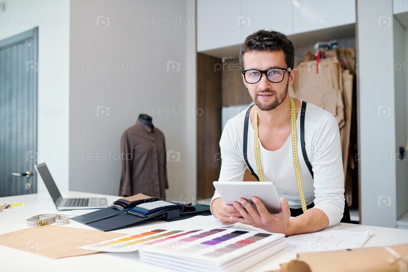 Молодой человек, работающий в сети или просматривающий Интернет для новых творческих идей
