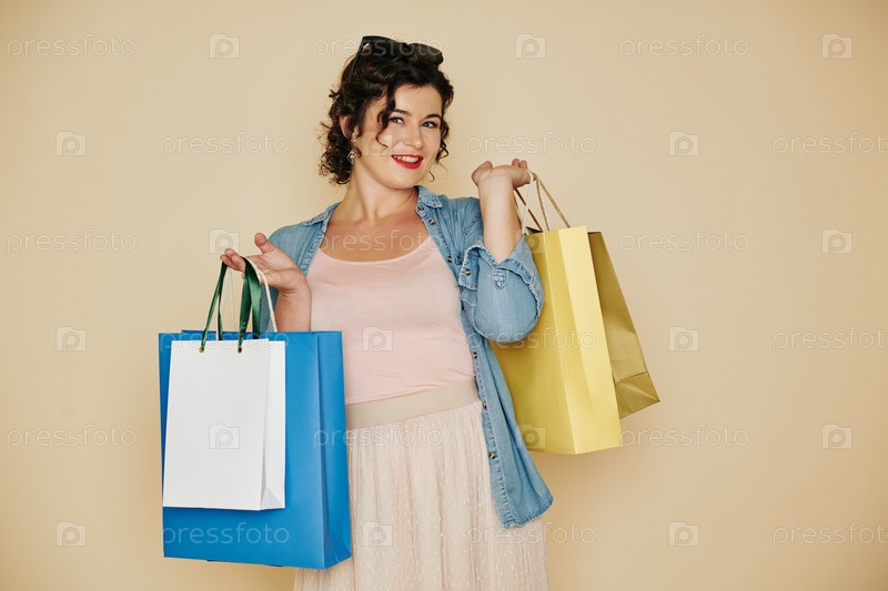 Счастливая женщина-шопохолик