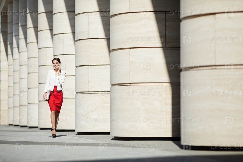 Деловая женщина, идущая по столбам