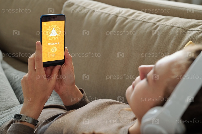 Ученик онлайн-курса йоги лежит на диване и ждет загрузки сайта