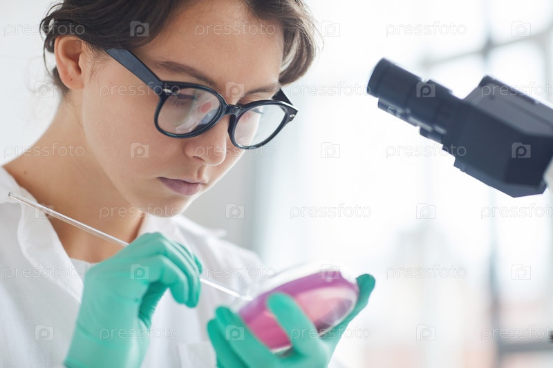 Молодая женщина держит чашку Петри