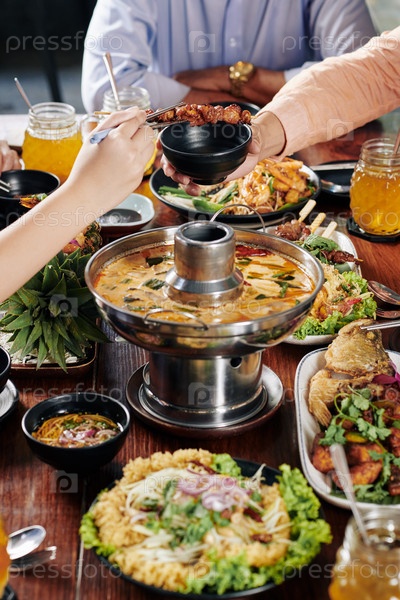 Люди, которые едят вкусную азиатскую еду