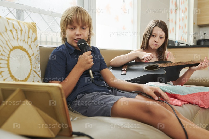 Дети наслаждаются караоке дома
