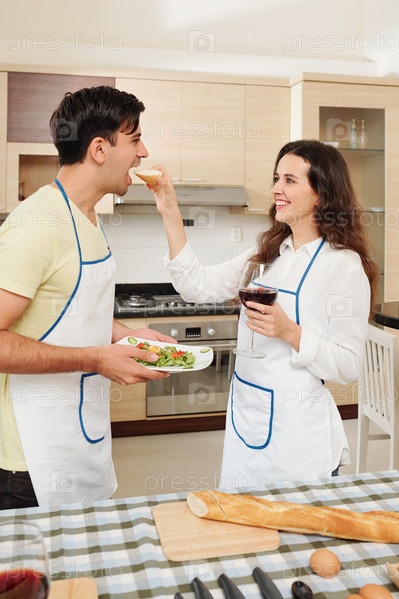 Пара ест салат, который они приготовили