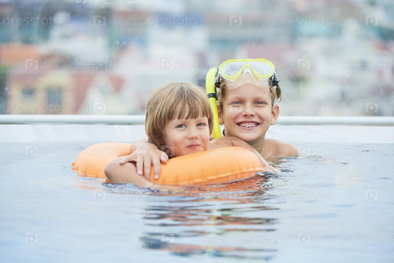 Два брата плавают в бассейне