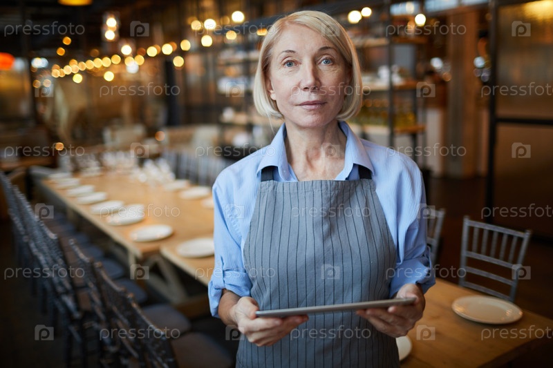 Зрелая женщина управляет кафе