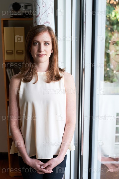 Элегантная деловая женщина стоит в офисе